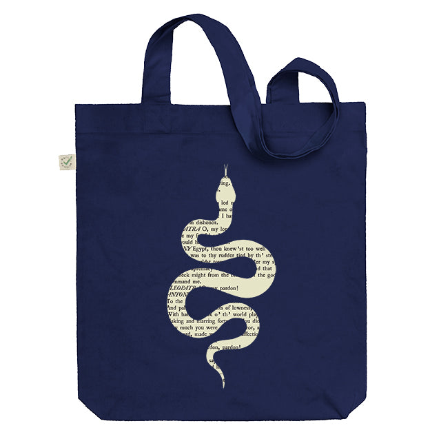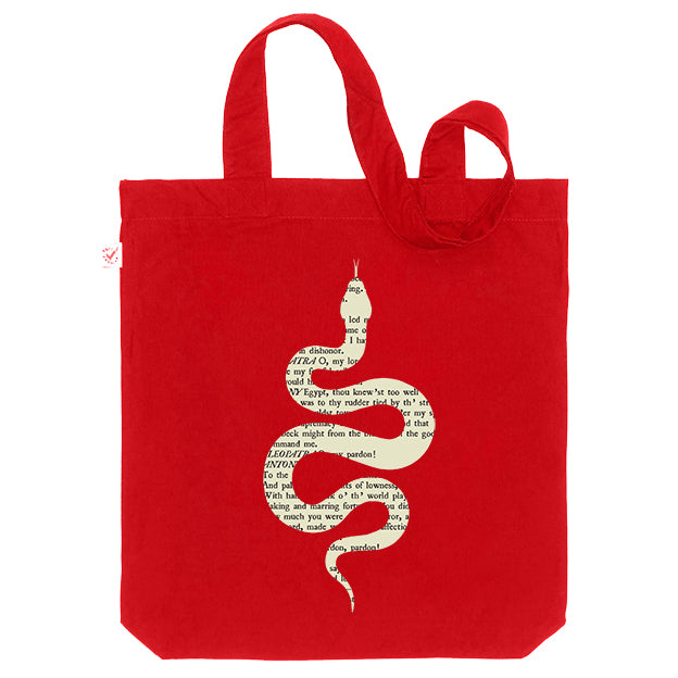 This tote bag creatively combines a page and evocative image from Shakespeare's Antony and Cleopatra (or The Tragedie of Anthonie, and Cleopatra).