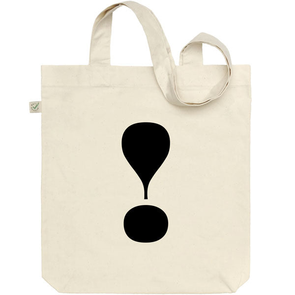 This tote bag features a large black exclamation mark, sourced from the typeface ‘OhNo Fatface’ made by type designer James Edmondson.