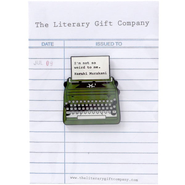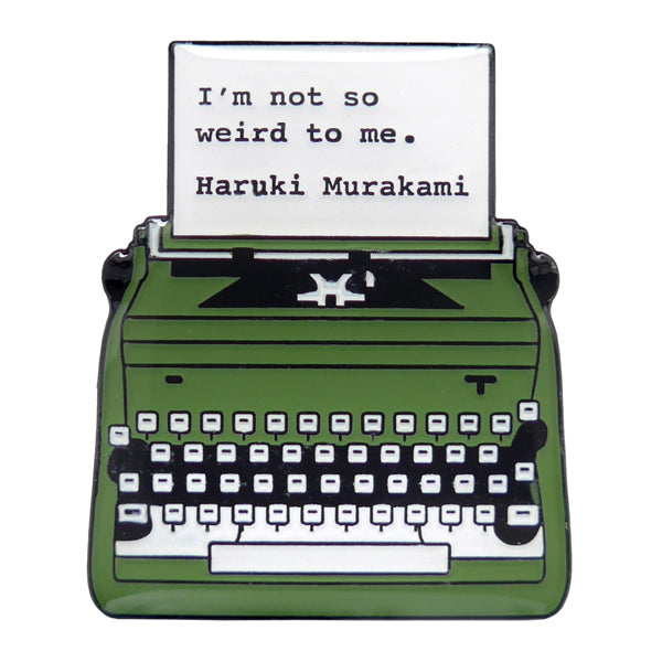 A classic Murakami quote: "I'm not so weird to me." on this olive green metal badge/brooch. Beautifully made out of enamelled steel in Birmingham's Jewellery Quarter.