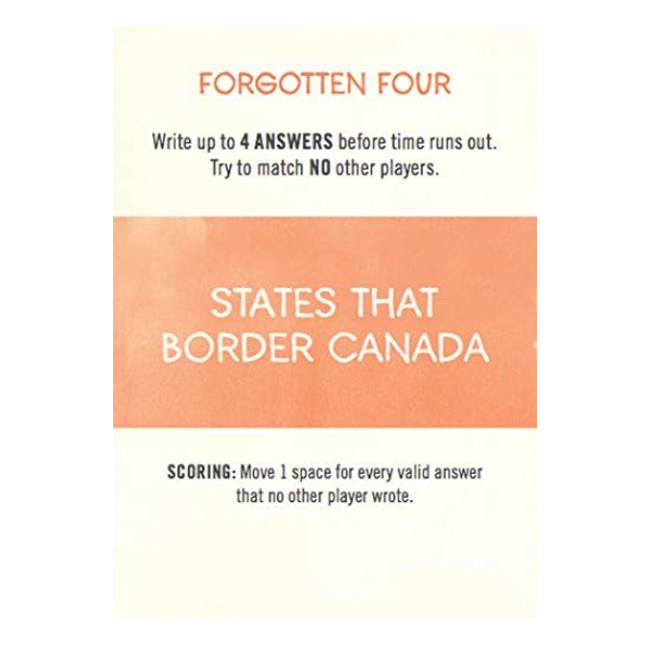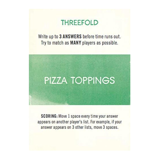 If you like making lists, you will enjoy this family board game which is based on the popular Listography journal series. There are 300 prompt cards to inspire frantic list making against the clock; list headers are wide ranging and often pleasingly quirky - Pizza Toppings and Things You Plug In are typical of the genre. Points are variously won for similar or unique answers as specified on the cards, with the winner making it around the board first. This is a game to generate creative thinking, lots of laughter and a fair bit of squabbling - all in all, great family fun!