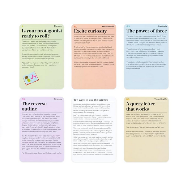 This is the ultimate toolkit for aspiring writers. 60 cards provide practical coaching on plot, style, characterisation and more, and expert advice on every aspect of writing is dispensed. Also included is a booklet containing troubleshooting hints and a handy roadmap to writing success.